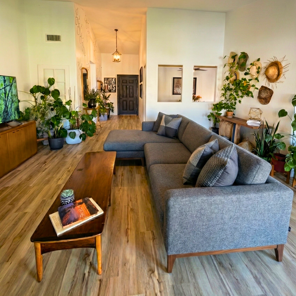 We simplify the process by meticulously choosing pieces that balance style, functionality, and sustainability, incorporating both new and thoughtfully repurposed items to create a truly unique space.